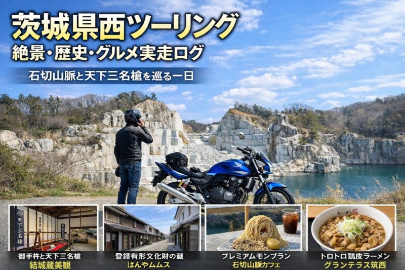 【茨城・県西ツーリング】天下の三名槍と石切山脈。絶品ご当地グルメと巨大モンブラン(絞り出し動画あり)を巡る旅