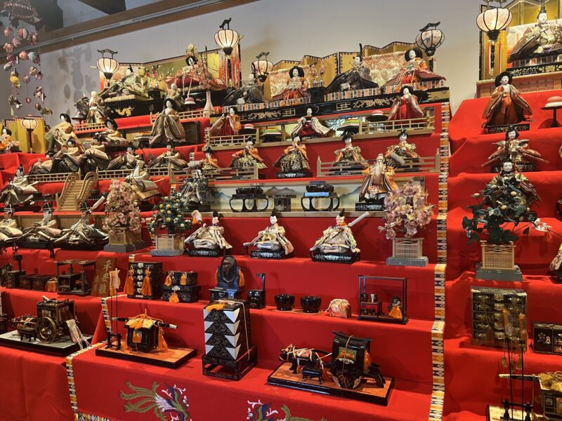 結城蔵美館の中に入ると、ひときわ目を引く雛段飾りが展示されていました。(2026/3/3まで展示)