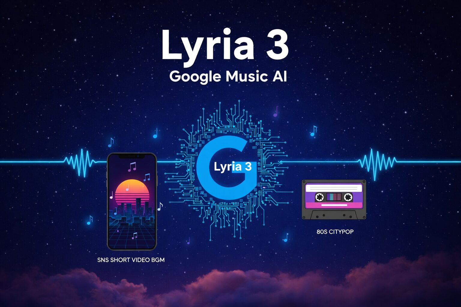 Suno AIが「3分間のフルコーラス(歌モノ)」を生成して一曲完成させるツールだとすれば、このLyria 3は「30秒の情景(BGM)」を切り取るツール。
