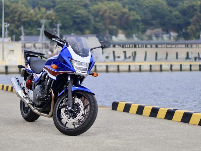 茨城から横須賀までは、ひたすら雨との戦いでした。 しかし、ここでCB400SBを選んだ恩恵を受けました。 特徴である「ハーフカウル(風防)」が、雨風を劇的に防いでくれたのです。