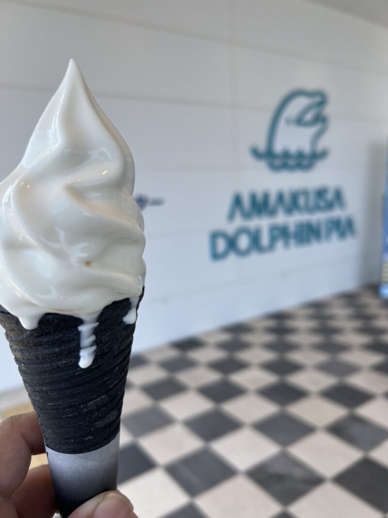 穏やかな海を眺めながら、冷たいソフトクリームを注文。